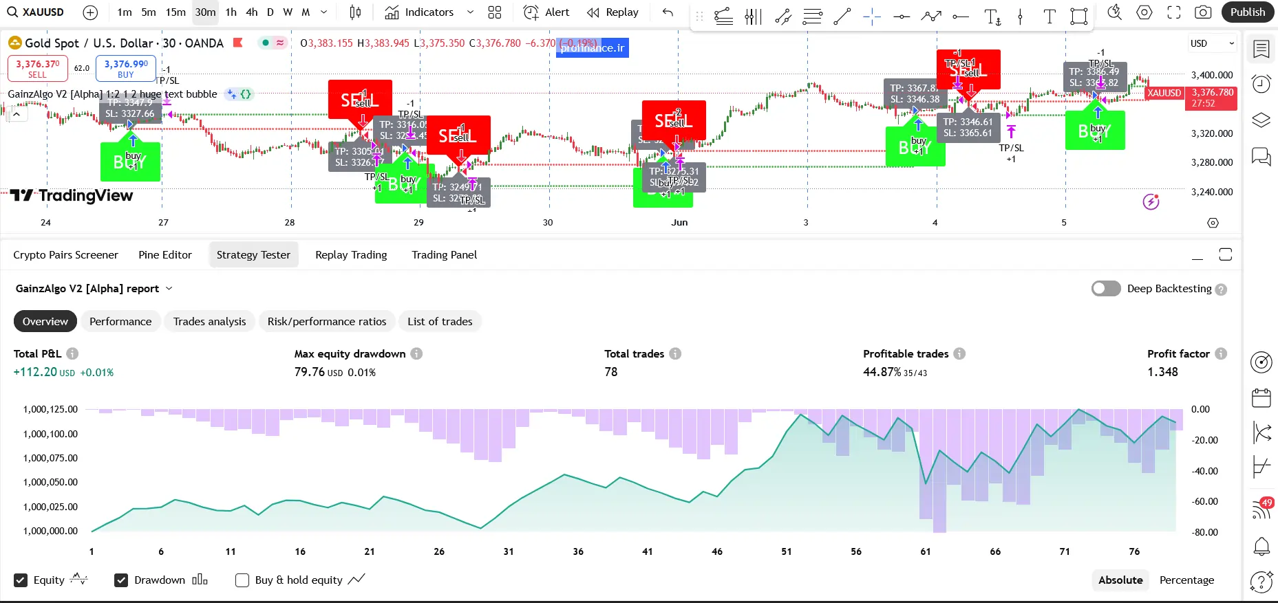 Now you can access the GainzAlgo Alpha TradingView Strategy directly from forex-indicator. Backtest it on historical market data to confirm your setup’s profitability before going live.